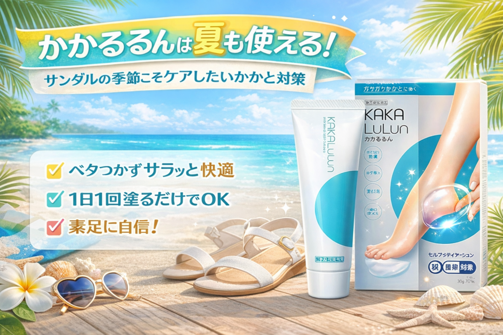 かかとのガサガサって、冬だけじゃないんですよね。 実は夏もサンダルを履く機会が増えることで、かかとが目立ってしまって気になる方も多いのではないでしょうか。 かかるるんは、夏の素足シーズンにもぴったりのアイテムなんです。 今回は、サンダルの季...